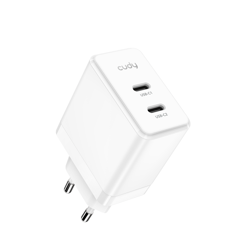 CUDY 2-Port 40W USB-C Charger, GaN, 2 x USB-C (20W max per port), QC+PPS+PD 3.0, EU plug, Fast charge for iPhone 12 Series and above, Galaxy, iPad, Macbook Air and more