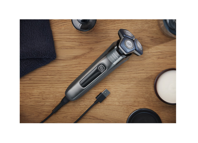 Aparat de barbierit PHILIPS Shaver Seria 5000 S5887/10, barbierit umed/uscat, tehnologie SkinIQ, fara fir, capete flexibile 360°, display LED, senzor Power Adapt, lame auto-ascutire, lama de tuns integrata, 60 min, husa, Gri carbon
