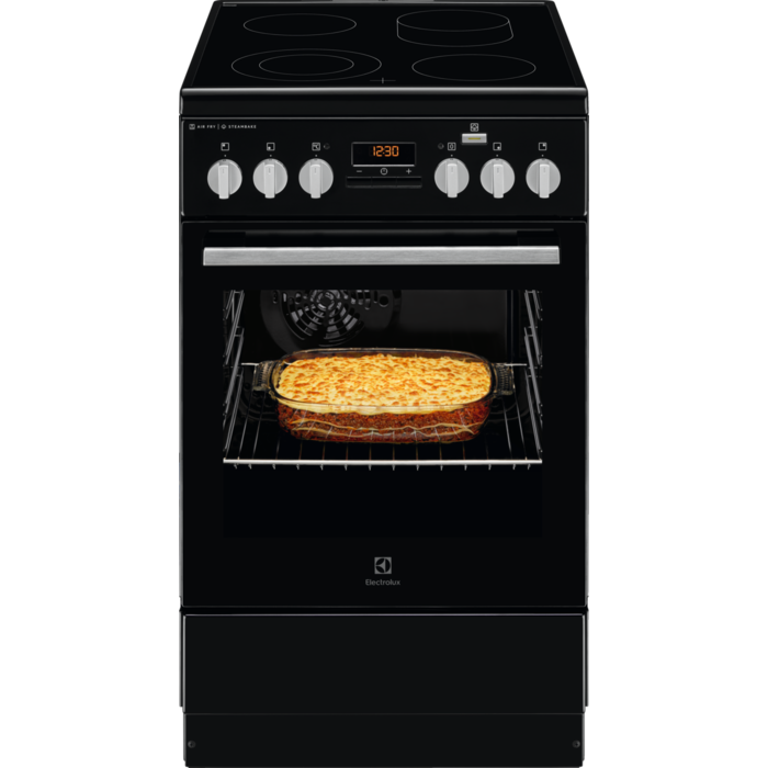 Aragaz Electrolux SteamBake AirFry LKR564200K, Electric, 4 zone de gatit, Grill, 58 L, Autocuratare catalitica, 50x60 cm, Negru