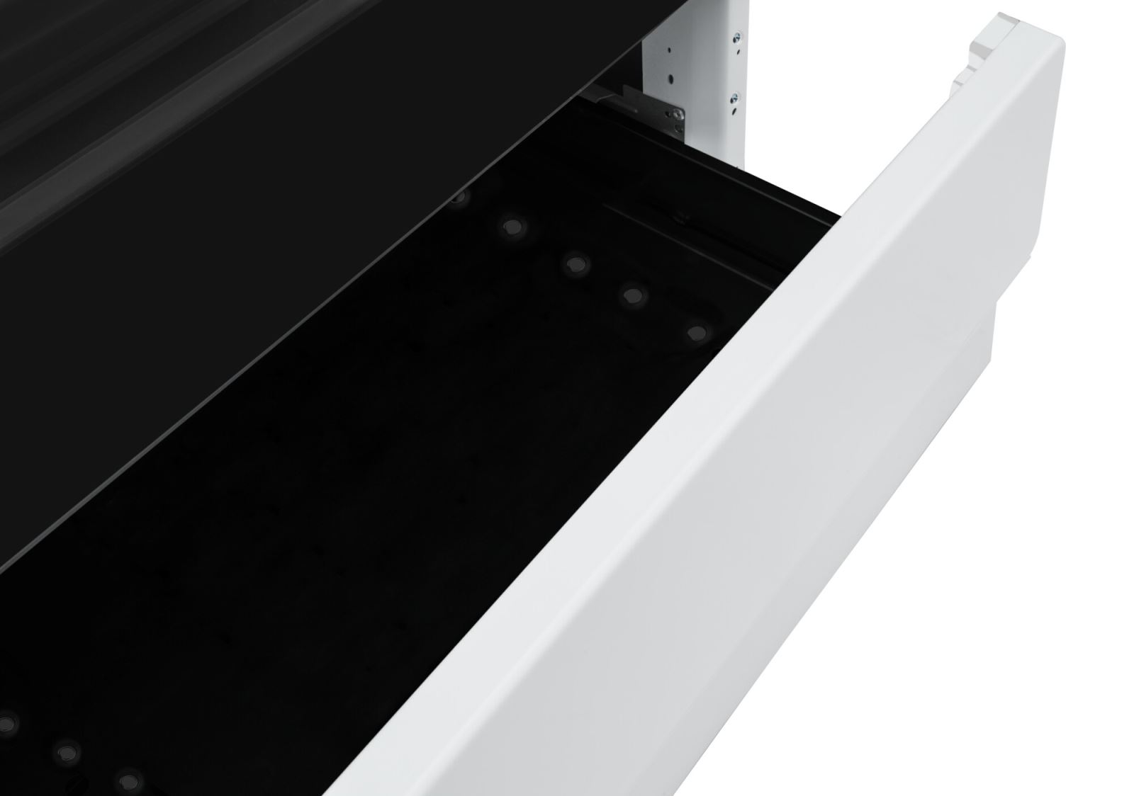 Sertarul din partea inferioară a cuptorului este montat pe role uşor de deplasat, acesta fiind un loc ideal pentru depozitarea vaselor, oalelor şi cratiţelor.