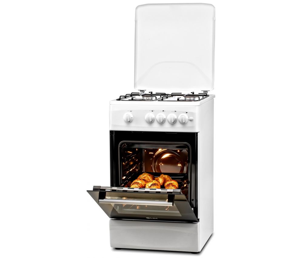 Aragaz LDK 5060 A WH RMV NG, Gaz, 4 arzatoare, Siguranta, Aprindere electrica, Cuptor 46 L, Capac metalic, 50x60 cm, Alb, ART6174