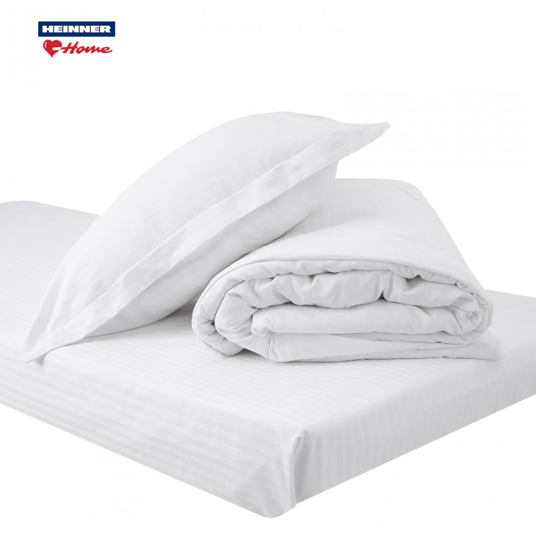 Cearceaf de pat plat hotel, alb cu dungi satinate de 1 cm