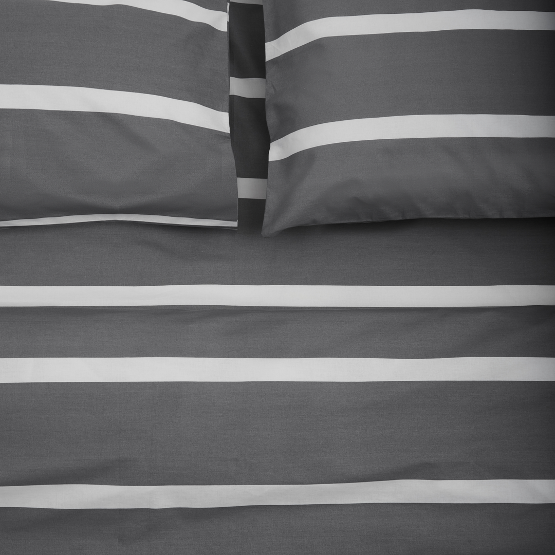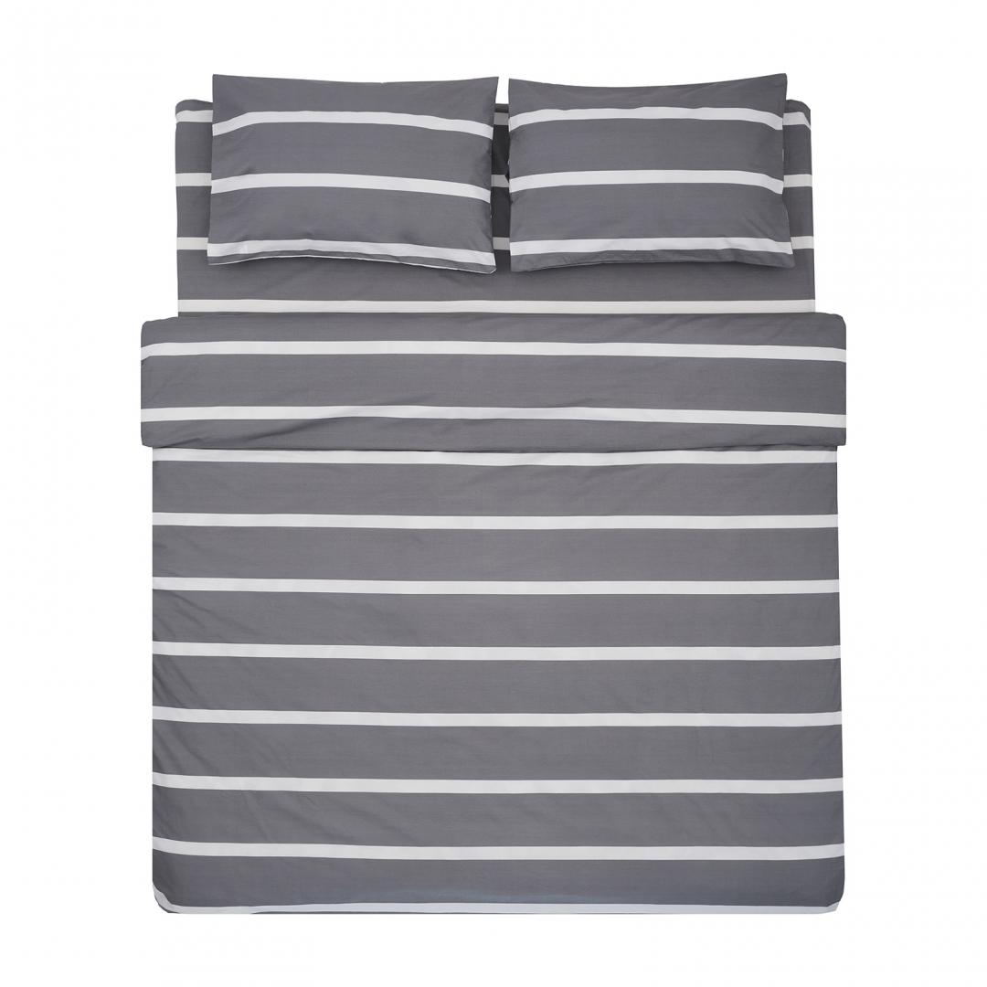 Lenjerie de pat dubla din 100% bumbac, densitate 132TC. Dimensiuni produs: 2 fete de perna 50x70 cm , cearceaf pilota 180x215 cm, cearceaf pat  200x220 cm. Fetele de perna au sistem de inchidere tip plin, cearceaful de pilota are sistem de inchidere cu nasturi