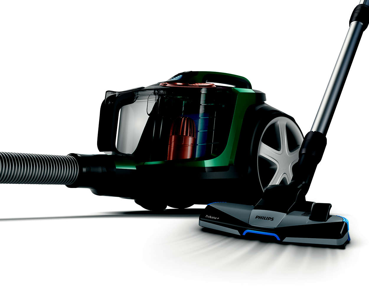 Tehnologie dezvoltată pentru a obţine performanţă maximă, cu clasa A+ de eficienţă energetică, clasa A pentru performanţa de curăţare pe suprafeţe dure şi clasa A pentru emisiile de praf.