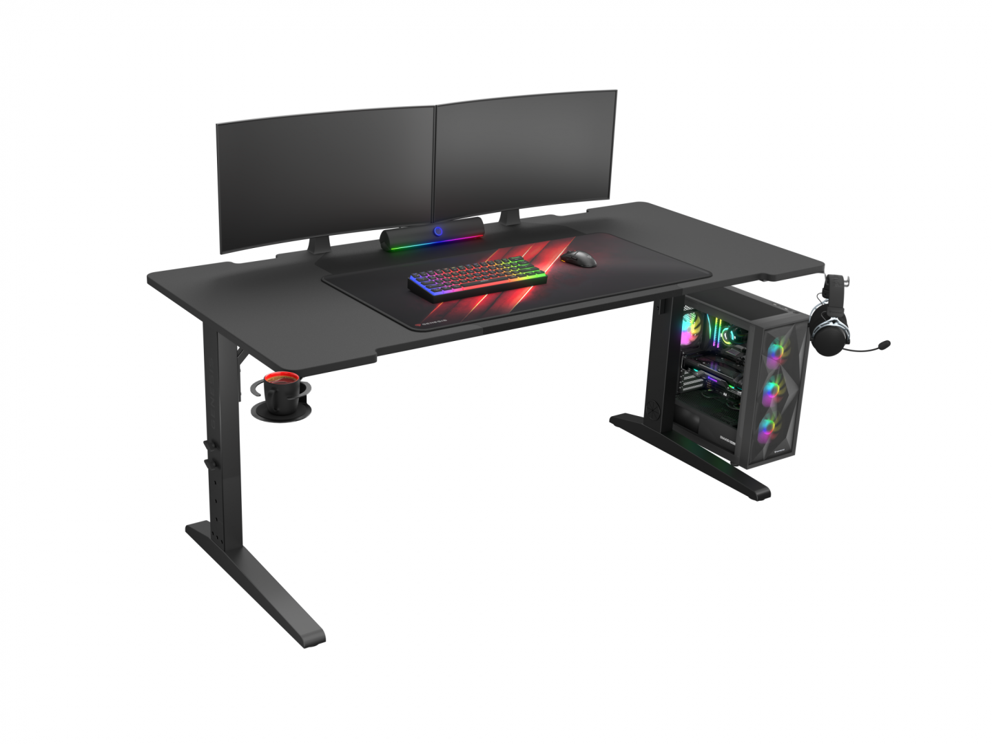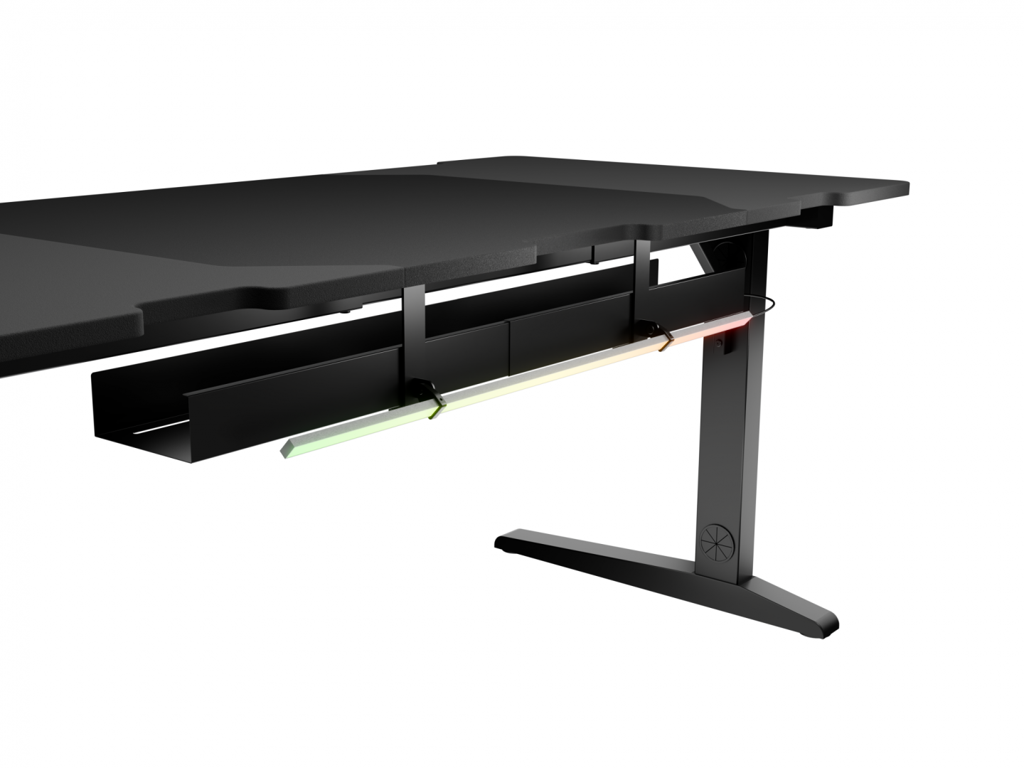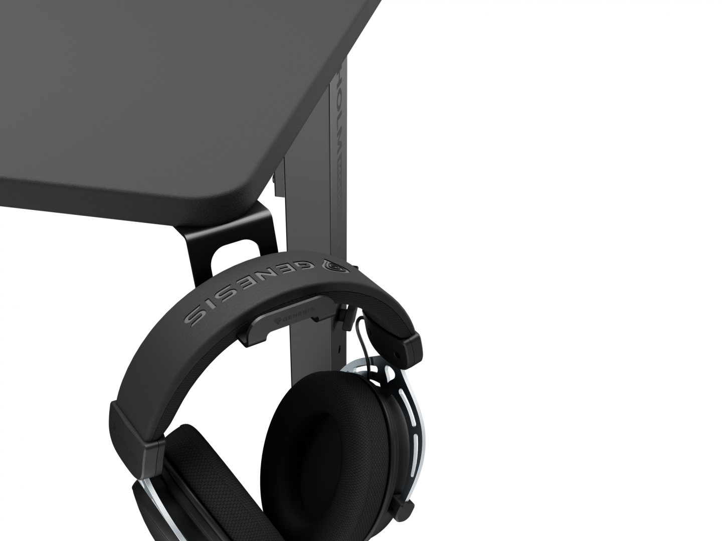 Birou gaming Genesis Holm Modular 160, material lemn/metal MDF, reglabil pe inaltime 70 - 90 cm, iluminare RGB, management cabluri, negru
