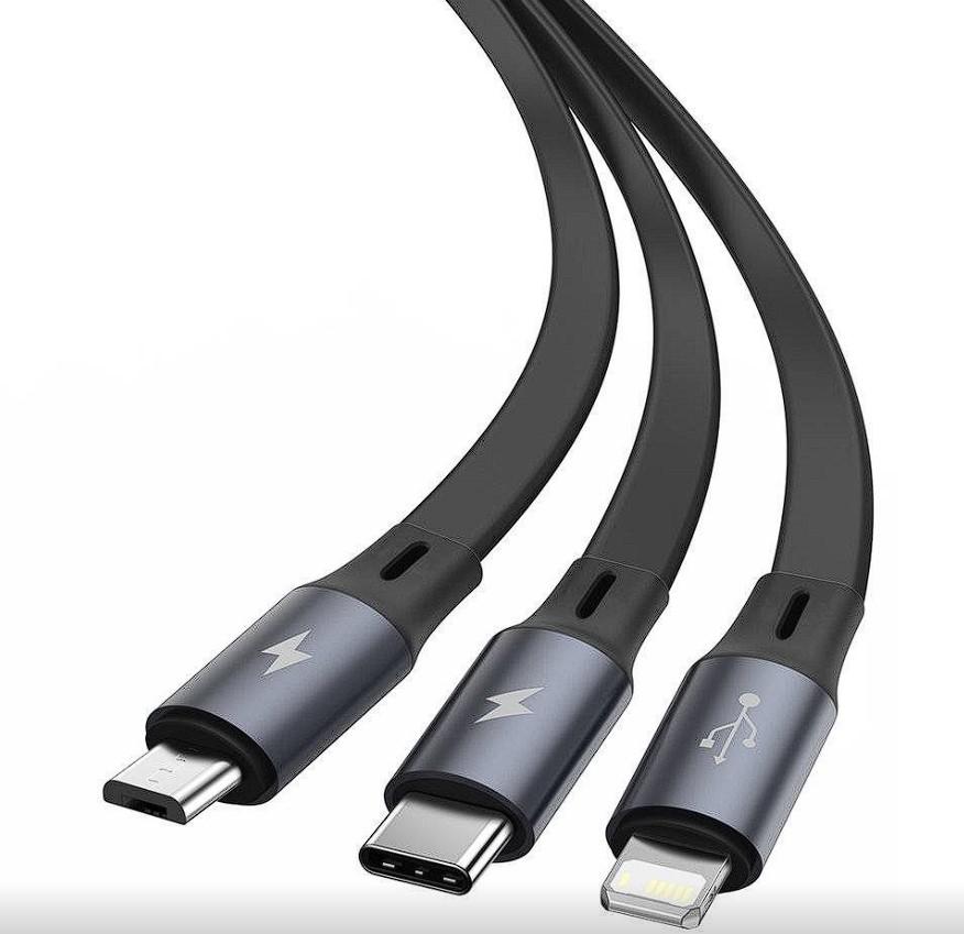 CABLU alimentare si date Baseus Bright Mirror 2 One-for-three Retractable, pt. smartphone, USB la Micro-USB + Lightning Iphone + USB Type-C 3.5A, 1.1m, negru