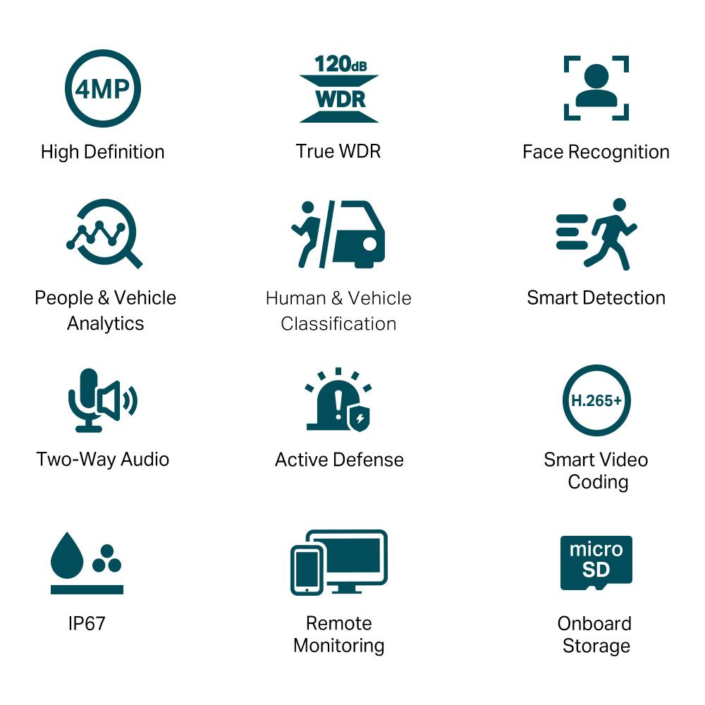 Camera IP Bullet TP-Link VIGI C340S(4mm), 4MP, Lentila 4mm, IR+WL 30ml, rezolutie video 2304 × 1296, +/H.265/H.264+/H.264,