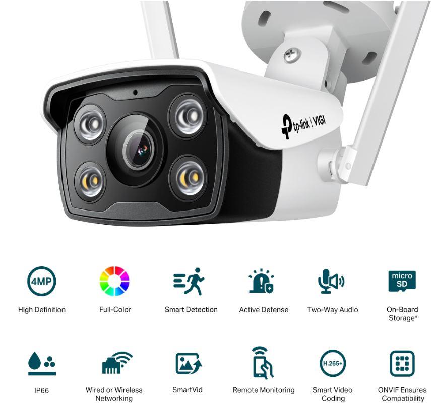 "TP-LINK VIGI 4MP Outdoor Bullet Network WIFI Camera,VIGI C340-W(4mm), 1/3"" Progressive Scan CMOS, obiectiv: 4mm, F1.6, unghi vizualizare Horizontal FOV: 79°, Vertical FOV: 43°, Diagonal FOV: 93° distanta IR: 30mm, interfata : 2.4 GHz, 1 x RJ45 10/100M. Ip66"