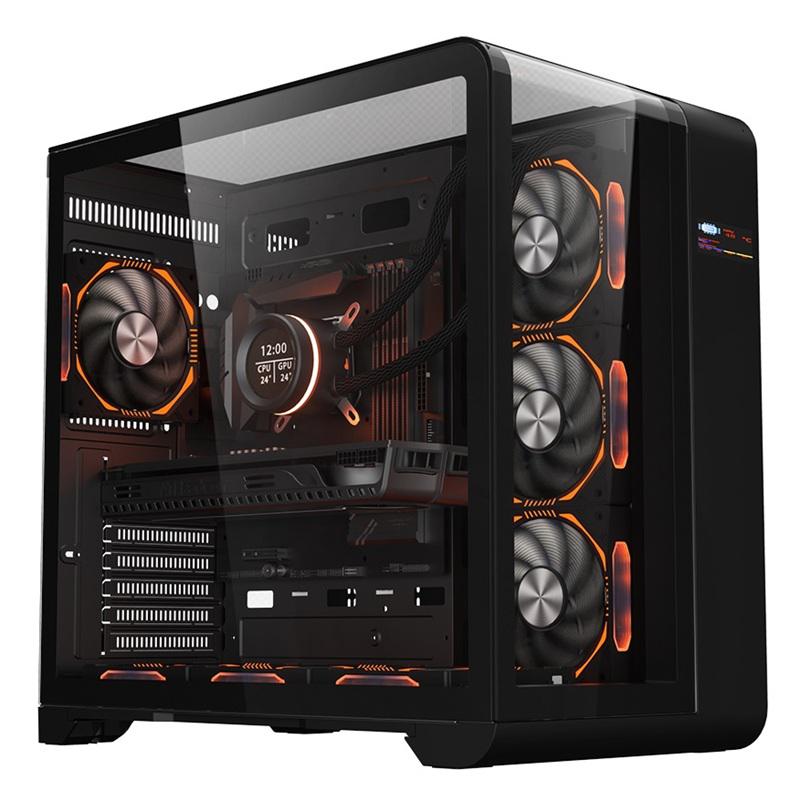 Carcasa 1stPLAYER Gaming RT7-bk, afisaj digital, 4 ventilatoare aRGB infinity efect, telecomanda, ATX, negru