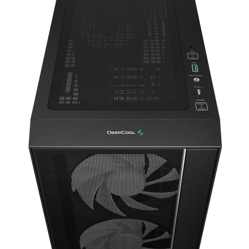 Carcasa DEEPCOOL MATREXX 55 MESH V4 Mid Tower NEGRU, Tempered Glass, Sloturi Expansiune: 7, Drive Bays: 2x3.5" 2+1x2.5", Ventilatoare Suportate: 8 (spate: 1x120mm, fata: 3x120mm sau 3x140mm, sus: 2x120mm sau 2x140mm, invaluit in sursa: 2x120mm), Ventilatoare Incluse: 4 (fata: 3x140mm, spate: 1x120mm), Format Placa De Baza Suportat: Mini-ITX, Micro-ATX, ATX, Lungime Maxima Placa Video: 370mm, Inaltime Maxima Cooler Procesor: 165mm
