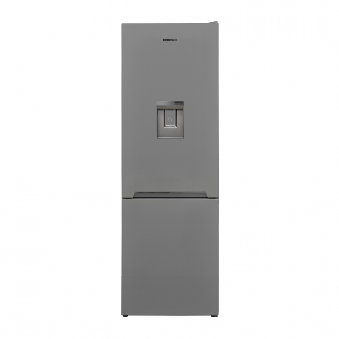 Combina frigorifica Heinner HC-V2701SWDE++, clasa energetica: E, capacitate totala: 268L, capacitate frigider: 184, capacitate congelator: 84L, control mecanic cu termostat ajustabil, lumina LED, functie Super congelare, 3 rafturi sticla frigider, 3 sertare congelator, compartiment pentru fructe si legume, dozator de apa, dimensiuni (WxDxH): 54 x 59.5 x 170 cm, argintiu