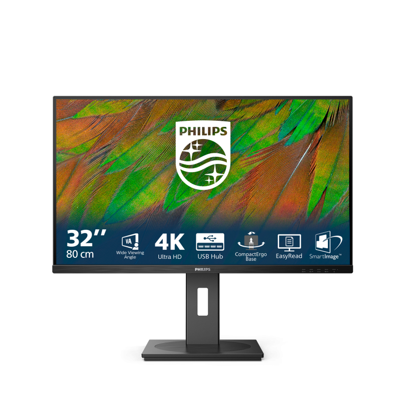 Monitor Philips 31.5" 32B1N3800/00, Diagonal (inch): 31.5, Diagonal (cm): 80, Aspect ratio: 16:9, Panel: LCD VA, Resolution: 3840x2160, Refresh Rate: 60Hz, Response time GtG: 4ms, Brightness (max): 350 cd/m², Contrast (static) : 3500:1, Contrast (dynamic): 50M:1, Viewing angle: 178/178, Color Gamut Type: NTSC , Color Gamut Coverage: 1.06, Colours: 1.07B, Speakers: 3Wx2, VESA Wallmount: 100x100, Tilt: -5/+25, HAS: 180mm, Pivot: +/-90°, Swivel: -180/180, D-SUB: 0, HDMI: x2, DisplayPort: x1, USB Hub: 1x USB 3.2 Gen1 Type-B (amonte), 4x USB Type-A (aval)