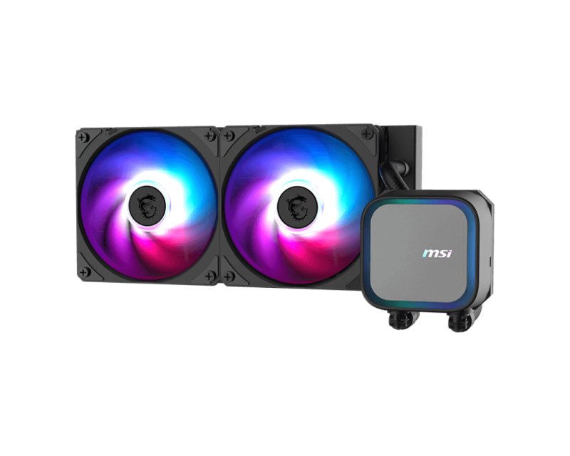 Cooler Procesor MSI MAG CORELIQUID A13 240 AIO Negru, marime radiator 240mm, 2 ventilatoare ARGB GEN2, Viteza pompa: 3800 +/- 10%, Suport AMD: AM4/AM5, suport INTEL: LGA 1700/1851, Airflow: 62.6 CFM, Nivel de zgomot pompa: 20dBA