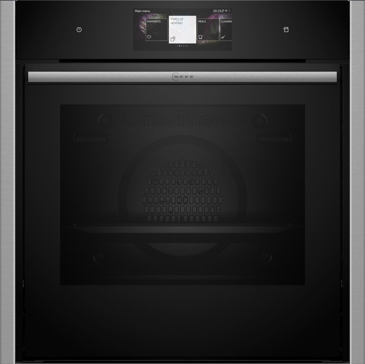 Cuptor incorporabil Neff B64VT73N0, Optiune aburi (Vario Steam), inox, 20 functii, Home Connect, sistem de autocuratare cu piroliza si Easy Clean, display TFT touch control, usa cu sistem Slide&Hide, SoftClose si SotfOpen, termometru pentru carne, Steam Boost, iluminare LED, capacitate 71 l