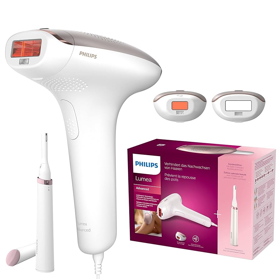 Epilator PHILIPS Lumea Advanced IPL BRI921/00, Filtru UV integrat, 5 setări de energie luminoasă, Sistem de siguranţă, Senzor de nuanţă a pielii, Trimmer facial Satin Compact, 2 capete interschimbabile, Alb