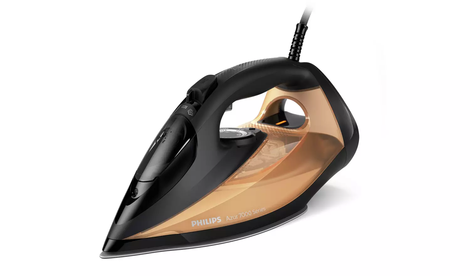 Fier de Calcat PHILIPS Seria 7000 DST7040/80, 2800W, 250g/min, 300ml, Talpa SteamGlide Elite, Auriu-Negru