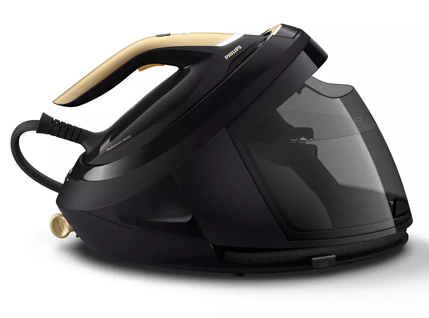 Statie de calcat Philips PerfectCare PSG8130/80, 2700 W, 8.5 bar, 1.8 L, Debit abur 170 g/min, Jet abur 700 g, Talpa SteamGlide Elite, Negru/auriu