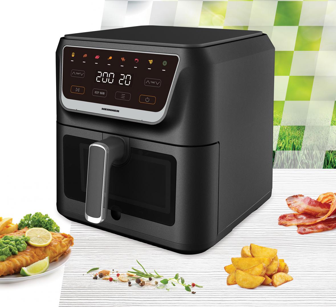 Friteusa cu aer cald Heinner Crisppro HAF-H8BK1700, 1700 W, 8 L, Display digital, Touch control, 8 programe presetate, Negru