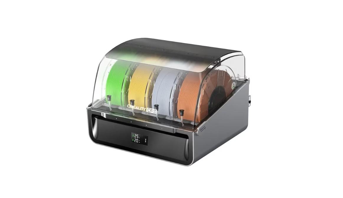 CREALITY CFS MULTI FILAMENT SYSTEM, Pentru printare 3D multi color sau multi filament, Compatibil cu Creality HI si Creality K2 Plus, Dimensiuni: 379 × 314 × 276 mm, Greutate: 4.56kg, Numar filamente suportate: 4, Diametru filament compatibil: 1.75mm, diametru 197-202mm, latime: 42-68mm, PLA/PETG/ABS/ASA/PET/PLA-CF, Port conectivitate: 485 × 2, Consum energie: 24W, Display: Segment LCD, uscare filament.