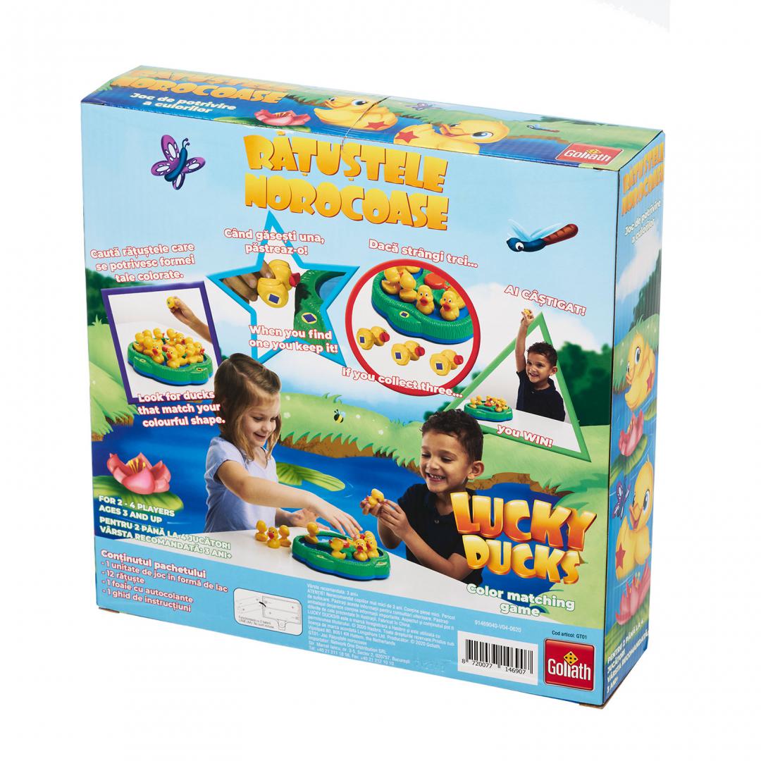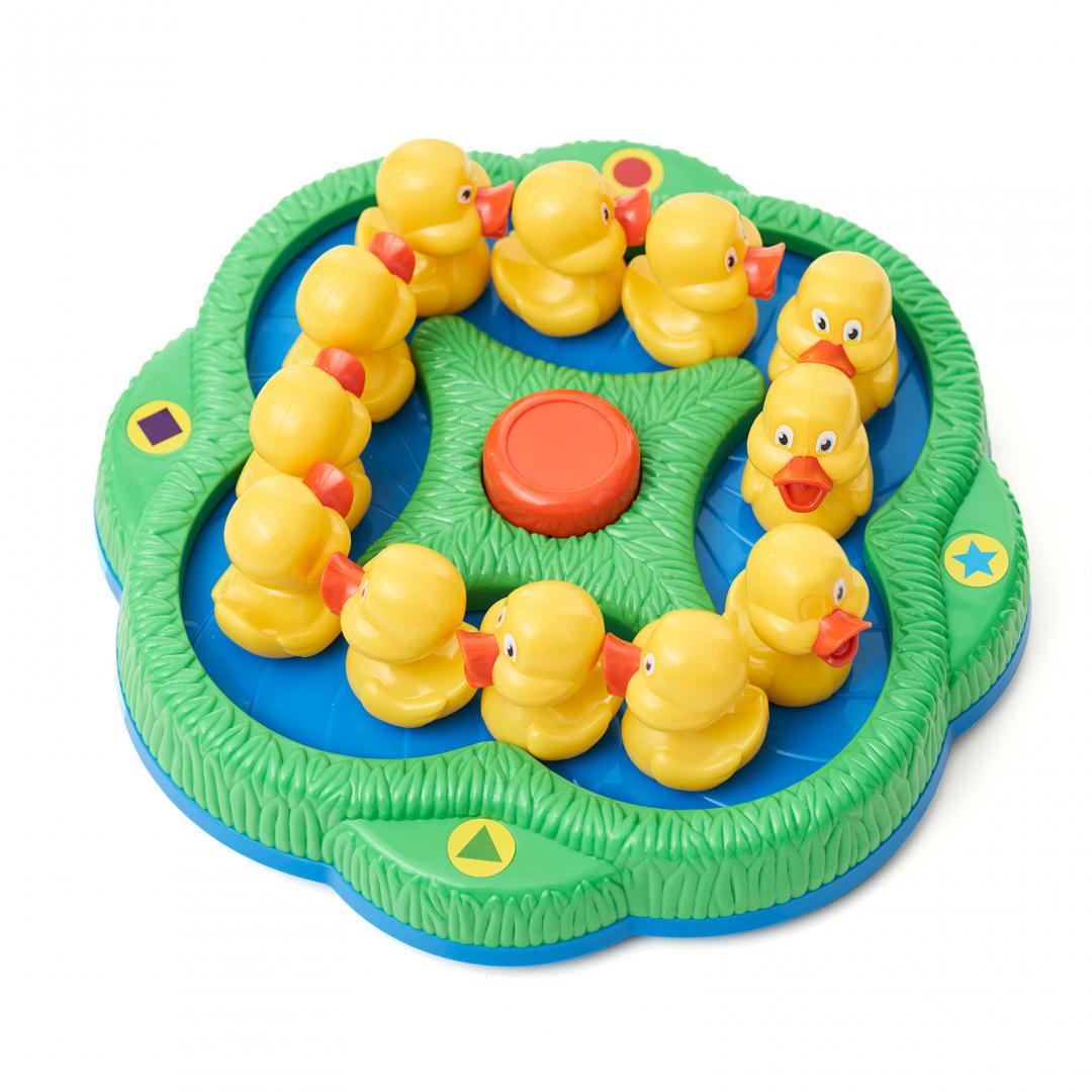 Acest joc excentric de memorare și potrivire combină abilitățile de dezvoltare ale celor mici cu distracție din „Primul meu joc”. Mută-te pe iazul circular, iar rățuștele vor începe să înoate - partea de jos a fiecărei rățuște are o altă formă și culoare. Pe rând, jucătorii vor ridica o rățușcă și vor verifica culoarea și forma; dacă aceasta se potrivește formei colorate din dreptul său, jucătorul va păstra rățușca. Dacă nu se potrivește, o va pune la loc. Câștigă primul jucător care strânge 3 rățuște având forma adecvată.