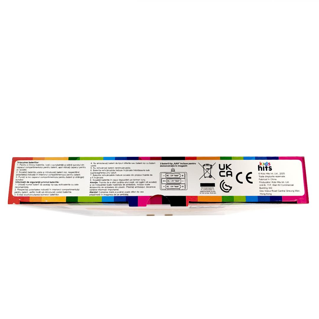 Jucăria funcționează cu 3 baterii ''AAA'' incluse.