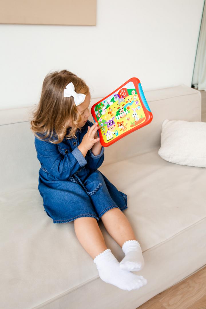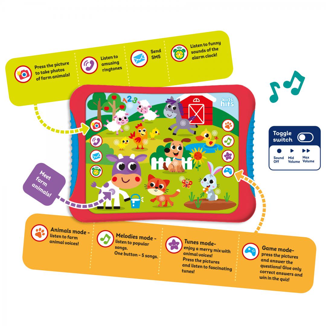Sunetele și melodiile fascinate, ilustrațiile strălucitoare și funcția ,, apasă'' stimulează toate simțurile copiilor și îi ajută să avanseze în procesul de învățare.