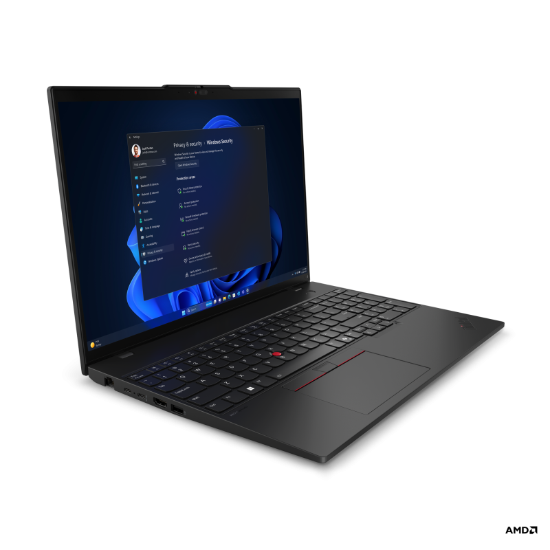 Laptop Lenovo ThinkPad L16 Gen 1 (AMD); 16" WUXGA (1920x1200) IPS 300nits Anti-glare, 45% NTSC; AMD Ryzen™ 5 PRO 7535U (6C / 12T, 2.9 / 4.55GHz, 3MB L2 / 16MB L3); Video Integrated AMD Radeon™ 660M Graphics; RAM 2x 16GB SO-DIMM DDR5-4800; 1TB SSD M.2 2280 PCIe® 4.0x4 NVMe® Opal 2.0, Optical: no ODD; No card reader, Speakers: Stereo speakers, 2W x2, Dolby Audio™, Camera: 5.0MP + IR Discrete with Privacy Shutter, LAN: 100/1000M (RJ-45); WLAN Qualcomm® Wi-Fi® 6E NFA725, 802.11ax 2x2; Bluetooth 5.3, WWAN (3G/4G): WWAN Upgradable to 4G, Fingerprint: Touch Style, Match-on-Chip, Integrated in Power Button; Ports: 1x USB-A (Hi- Speed USB / USB 2.0); 2x USB-A (USB 5Gbps / USB 3.2 Gen 1), one Always On; 1x USB-C® (USB 20Gbps / USB 3.2 Gen 2x2), with USB PD 3.0 and DisplayPort™ 1.4; 1x USB-C® (Thunderbolt™ 4 / USB4® 40Gbps), with USB PD 3.0 and DisplayPort™ 2.1; 1x HDMI® 2.1, up to 4K/60Hz; 1x Headphone / microphone combo jack (3.5mm); 1x Ethernet (RJ-45); 65W USB-C® (3-pin); Battery Integrated 57Wh, Keyboard: Backlit, English (EU), Color: BlackWeight Starting at 1.77 kg; Dimensions 357.2 x 253.4 x 20.78 mm, Warranty: 3Y Onsite from 1Y Depot WHB (CPN), OS: Windows® 11 Pro, Romanian / English