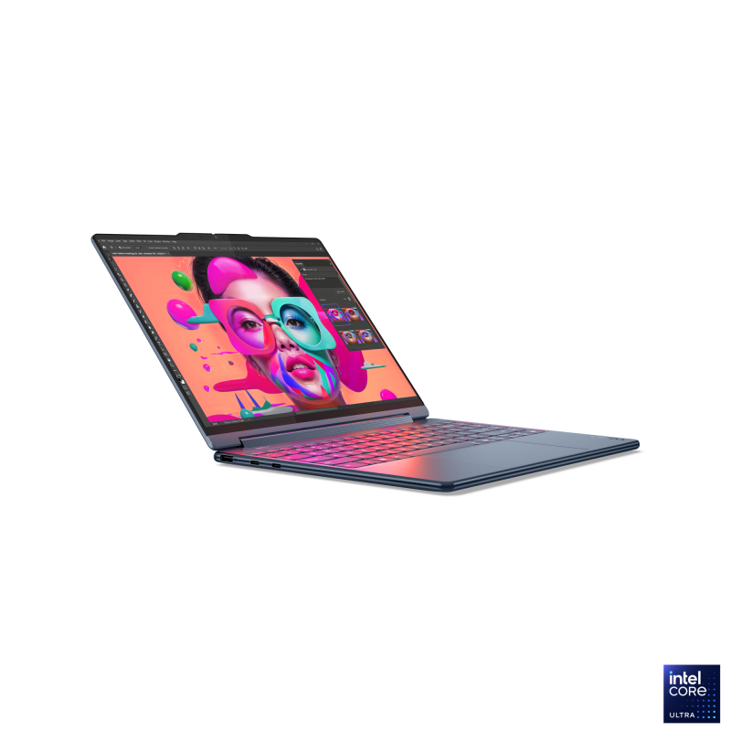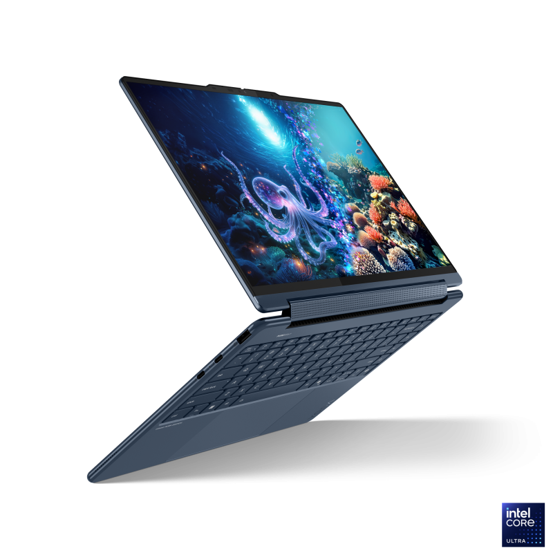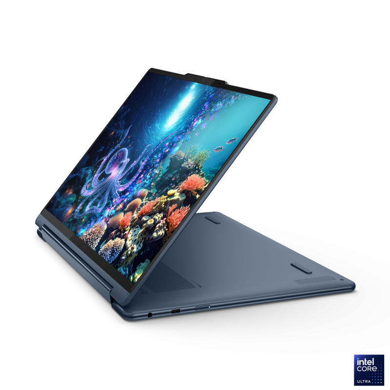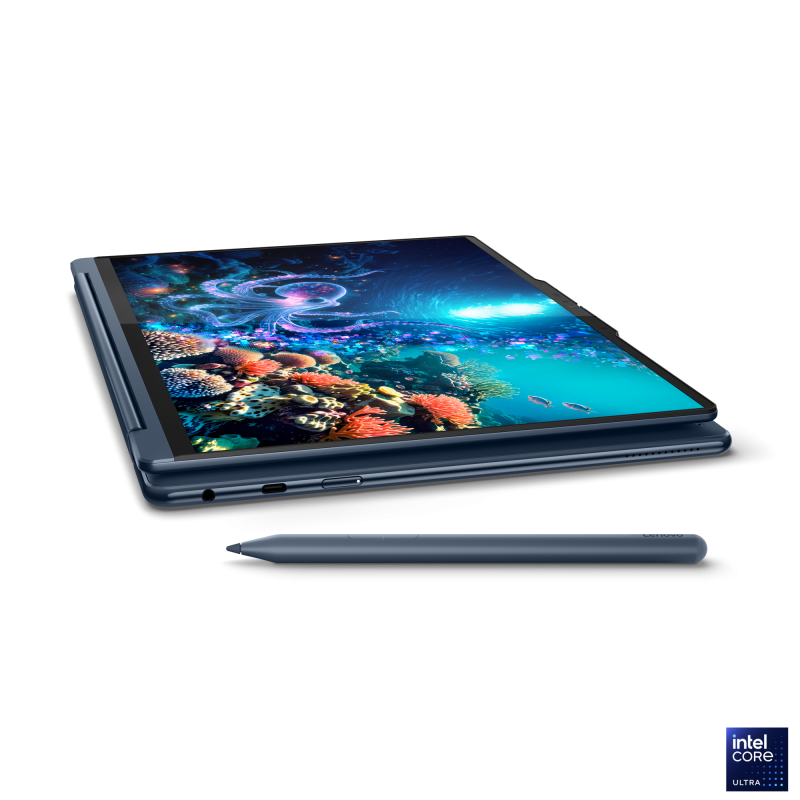Laptop Lenovo Yoga 9 2-in-1 14ILL10, 14" 2.8K WQXGA+ (2880x1800) OLED 1100nits (peak) / 500nits (typical) Glossy / Anti-fingerprint, 100% DCI- P3, 120Hz, Eyesafe®, Dolby Vision®, DisplayHDR™ True Black 1000, Glass, Touch, Intel® Core™ Ultra 7 258V, 8C (4P + 4LPE) / 8T, Max Turbo up to 4.8GHz, 12MB, video Integrated Intel® Arc™ Graphics 140V, RAM 32GB Soldered LPDDR5x-8533, MoP Memory, Memory soldered to systemboard, no slots, dual-channel, 32GB soldered memory, not upgradable, SSD 1TB SSD M.2 2242 PCIe® 4.0x4 NVMe®, no ODD, No Card reader, 4 stereo speakers, 2W x2 (woofers), 2W x2 (tweeters), optimized with Dolby Atmos®, Smart Amplifier (AMP), 5.0MP + IR with Privacy Shutter, No Onboard Ethernet, WLAN Wi-Fi® 7, 802.11be 2x2, Bluetooth 5.4, Non-WWAN, Touch Style, on Keyboard, Porturi: 1x USB-A (USB 10Gbps / USB 3.2 Gen 2), Always On, 1x USB-C® (USB 20Gbps / USB4® Gen 2x2), with USB PD 3.0 and DisplayPort™ 1.4, 2x USB-C® (Thunderbolt™ 4 / USB4® 40Gbps), with USB PD 3.0 and DisplayPort™ 2.1, 1x Headphone / microphone combo jack (3.5mm), 65W USB- C® (3-pin), Baterie Integrated 75Wh, Backlit, English, Cosmic Blue, Greutate 1.32 kg, Dimensiuni 316 x 220 x 15.9 mm (12.44 x 8.66 x 0.63 inches), 3Y Premium Care with Onsite upgrade from 2Y Depot/CCI (CPN), Accesorii Lenovo® USB-C® 4-in-1 Hub Gen 2, Lenovo® Yoga® Pen, Windows® 11 Home, Romanian / English