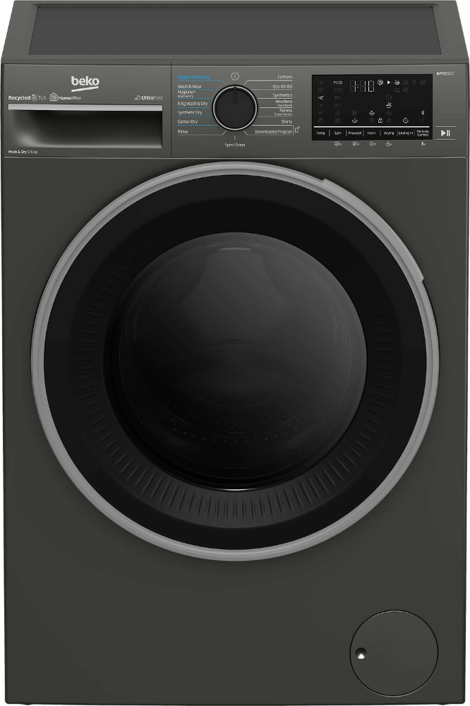 Masina de spalat Beko B5DFT510442M, 10 kg spalare, 6 kg uscare, Clasa A, 1400 RPM, Motor ProSmart Inverter, HomeWhiz, SteamCure, UltraFast, AddXtra, Gri