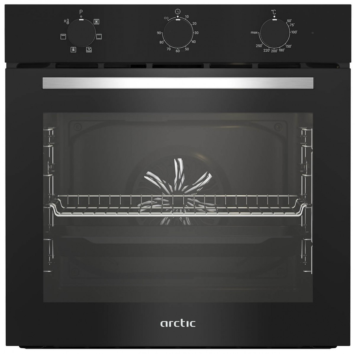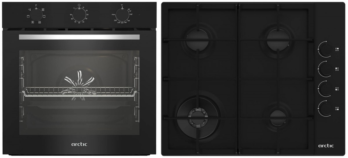 Pachet Incorporabile Arctic ARSE11130BD, Cuptor electric si plita pe gaz, 6 functii de gatit, 71 l, 4 arzatoare, Negru