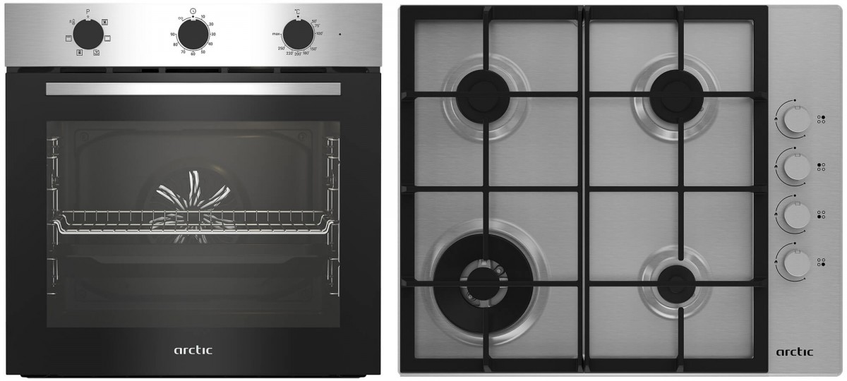 Pachet Incorporabile Arctic ARSE11130XD, Cuptor electric si plita pe gaz, 6 functii de gatit, 71 l, 4 arzatoare, Inox