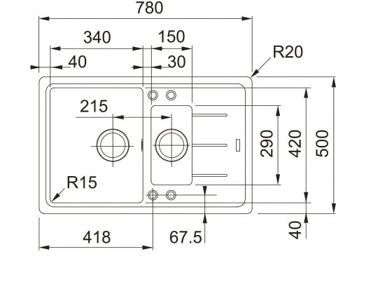 Dimensiuni cuve: 34 x 42 x 20 cm/15 x 29 x 10 cm