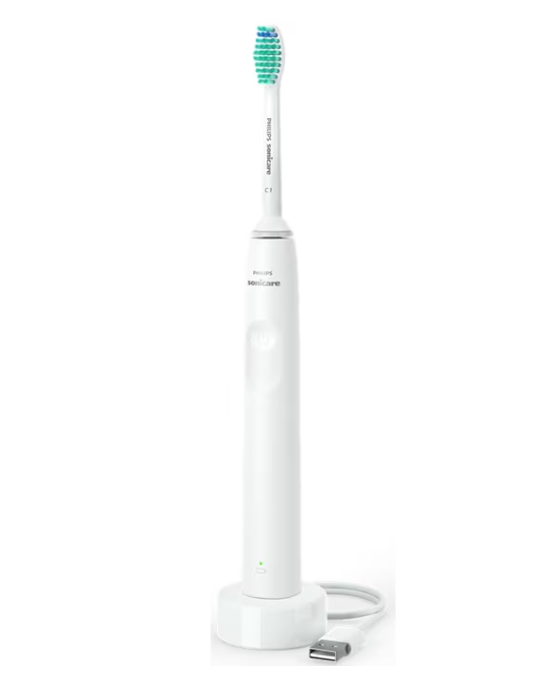 Periuta de dinti sonica electrica PHILIPS Sonicare Seria 2100 HX3651/13, 31000 miscari/minut, Cronometru Quadpacer si SmarTimer, Design ergonomic subţire, 1 capat de periere, Alb, L x A x I (mm) 109x63x220