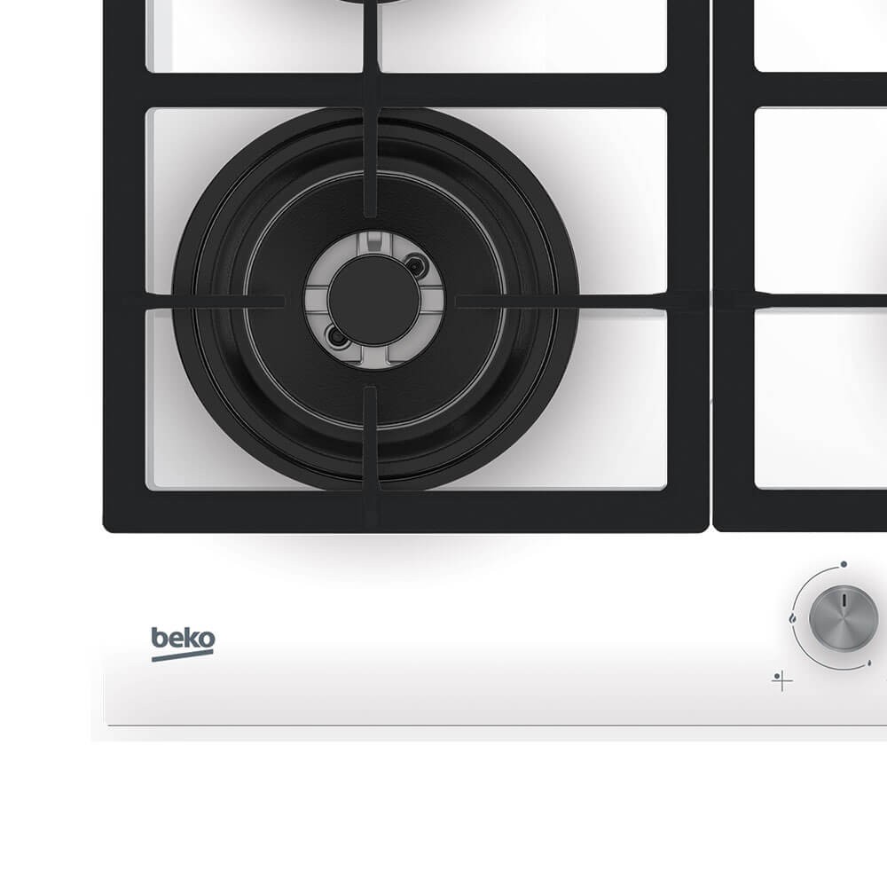 Plita incorporabila Beko HILW64225SW, Gaz, 4 arzatoare, Gratar de fonta, Alb