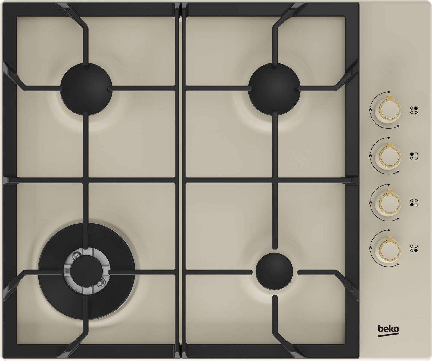 Plita pe gaz incorporabila Beko HIGG64125SCR, 4 arzatoare, 3 + 1 wok, Siguranta plita, Aprindere integrata, 60 cm, Crem