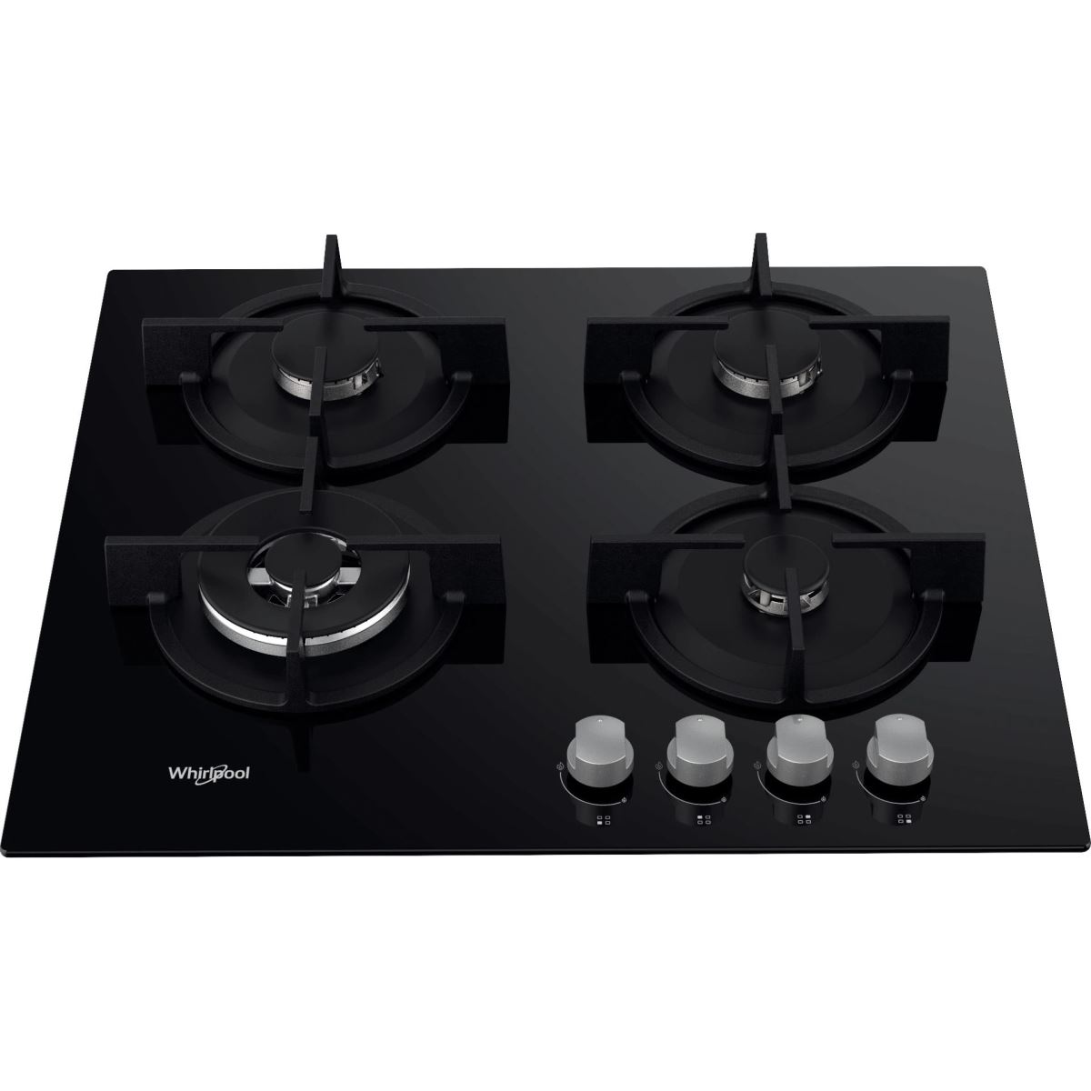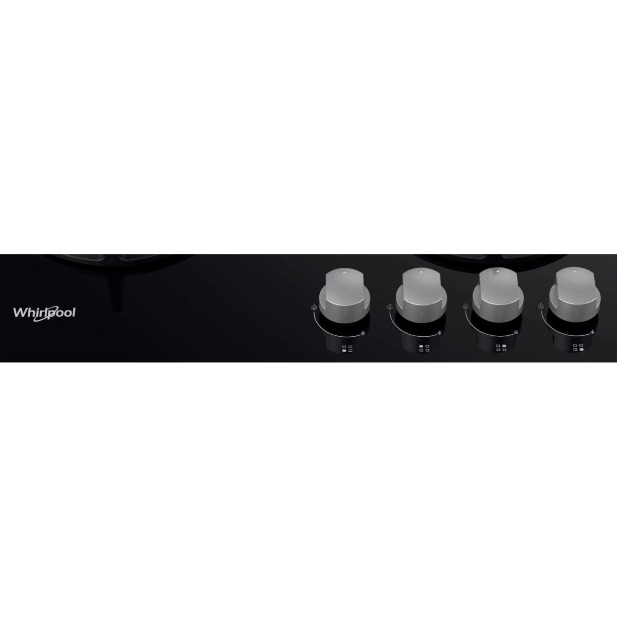 Plita incorporabila Whirlpool GOR625NB, Gaz, 4 arzatoare, Gratare de fonta, Aprindere electrica, 60 cm, Sticla neagra