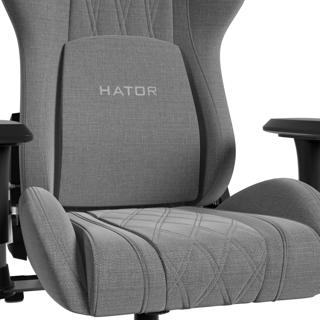 Scaun gaming Hator Darkside 3M Fabric, material cadru: Oțel, Țesătură CloudTouch™, piston cu gaz: Certificat SGS Clasa 4, cotiere: Ergonomice, 2D, bază cu 5 brațe ranforsate, realizată din PU armat, material de bază: spumă cu densitate mare InfuseFoam, dimensiune roți: 65 mm, material roți: Poliuretan, unghi reglaj spătar: 170°, perne: Pentru cap și lombar (cu prindere magnetică), greutate maximă suportată: până la 100 kg (mărimea M), până la 110 kg (mărimea L), gri