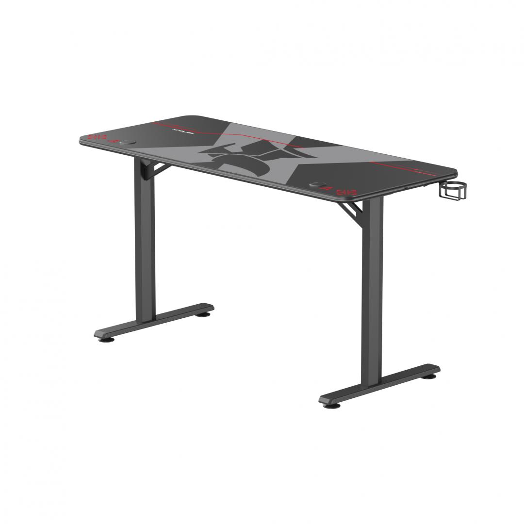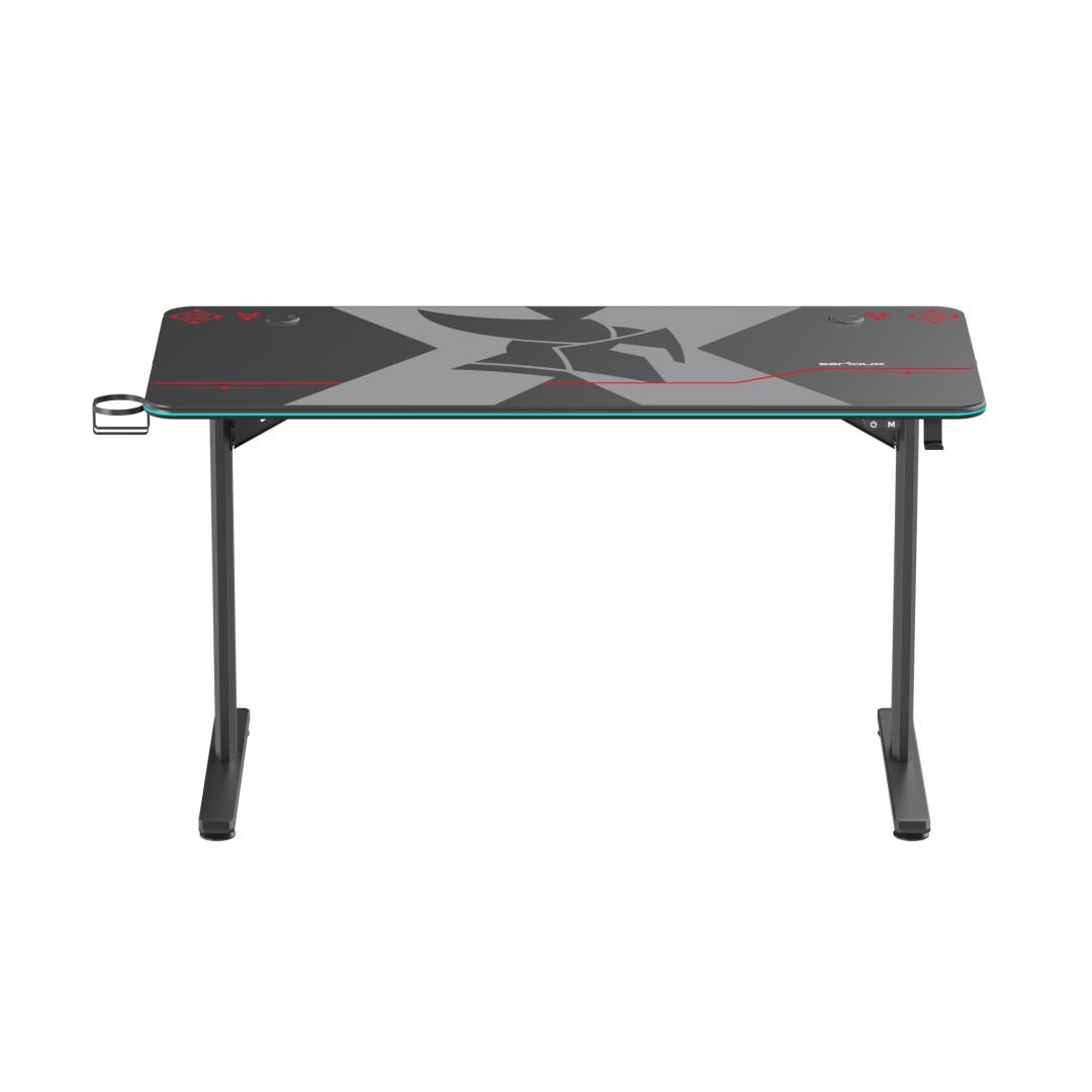 Birou gaming Serioux Aeter RGB, dimensiuni: 1200x600x750mm, dimensiune blat(LxLxT): 1360x600x18mm, greutate suportata: 75 kg, banda LED RGB, inaltime: 750 mm, mouse Pad inclus, suport casti, suport cana/pahar