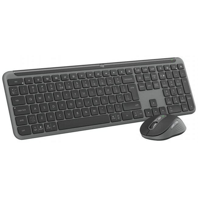 Kit wireless Logitech MK950 Signature Slim Combo, rezolutie mouse 4000 dpi, baterii mouse 1x AA (inclusa), tastatura wireless 2.4 GHz, baterii 2 x AA (incluse), gri