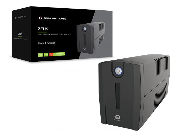 Conceptronic ZEUS02ES 850VA 480W UPS, Schuko x 2, HID USB, RJ45 In/Out, AVR, 96 x 286 x 138 mm