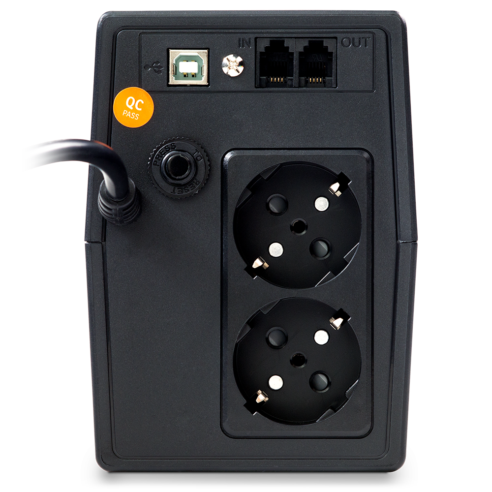 UPS nJoy Horus Plus 600, 600VA/360W, Afisaj LCD cu ecran tactil, 2 Prize Schuko cu Protectie, Repornire Automata, RJ11 protectie pentru linia de telefon/modem, Posibilitatea de monitorizare si control prin USB, LAN si internet, port de comunicare USB, rata de eficienta pana la 90%