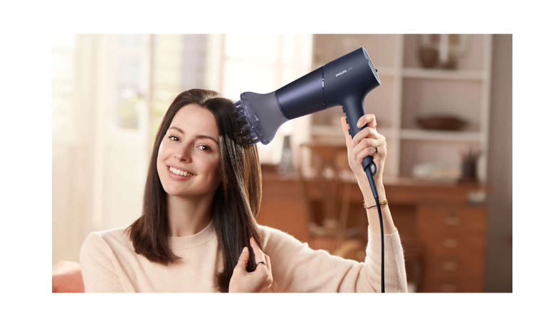 Uscator de par Philips BHD510/00, 2300W, tehnologie ThermoShield, ingrijire cu ioni, 2 setari de viteza, 3 setari de temperatura, difuzor, cap de coafare 11 mm, Albastru inchis metalizat