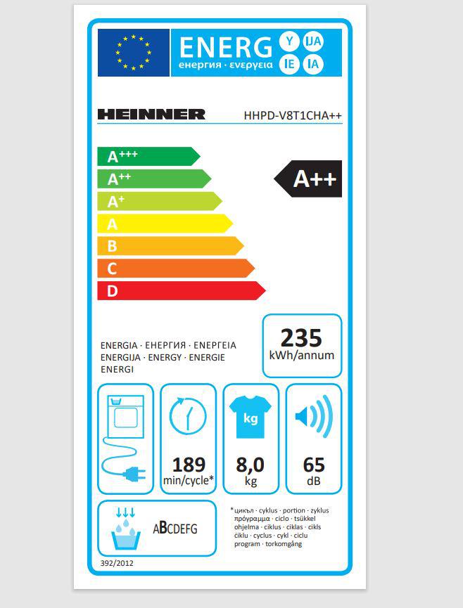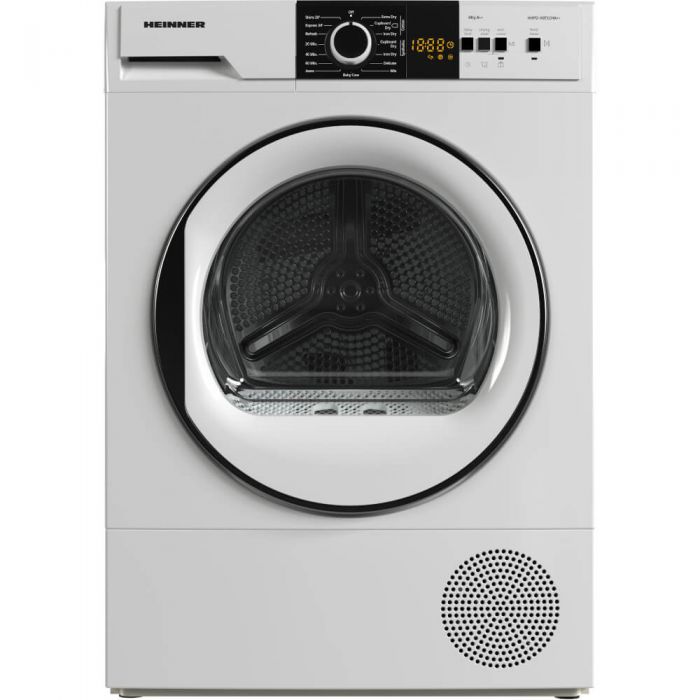 Uscator de rufe cu pompa de caldura Heinner HHPD-V8T1CHA++, Capacitate incarcare 8kg, 15 programe de uscare, Display LED, Program rapid camasi 20 min, Program expres 34 min, Program Baby Care, Functie Start intarziat, Functie anti-sifonare, Lumina cuva, Selector nivel uscare, Indicator curatare filtru scame, Indicator rezervor colectare apa plin, Blocare acces copii, Dimensiuni ( LxAxI): 59.6x56.3x84.5 cm, Culoare: Alb