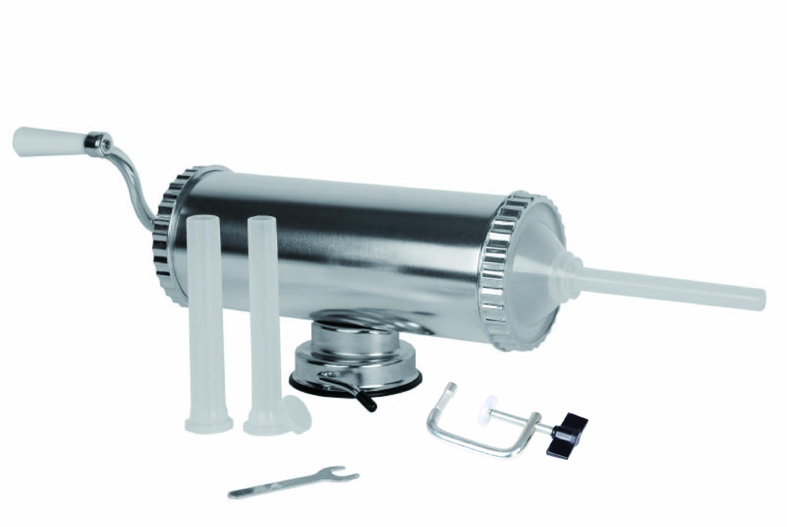 APARAT FORMAT CARNATI DIN ALUMINIU + ACCESORII ,2.5KG Material aparat: aluminiu Accesorii inlcuse : 1 x palnie diametru 2.2 cm 1 x palnie diametru 1.9 cm 1 x palnie diametru 1.5 cm 1 x baza palnii 1 x carlig fixare aparat de blatul de lucru 1 x ventuza pt fixare etansa pe blatul de lucru