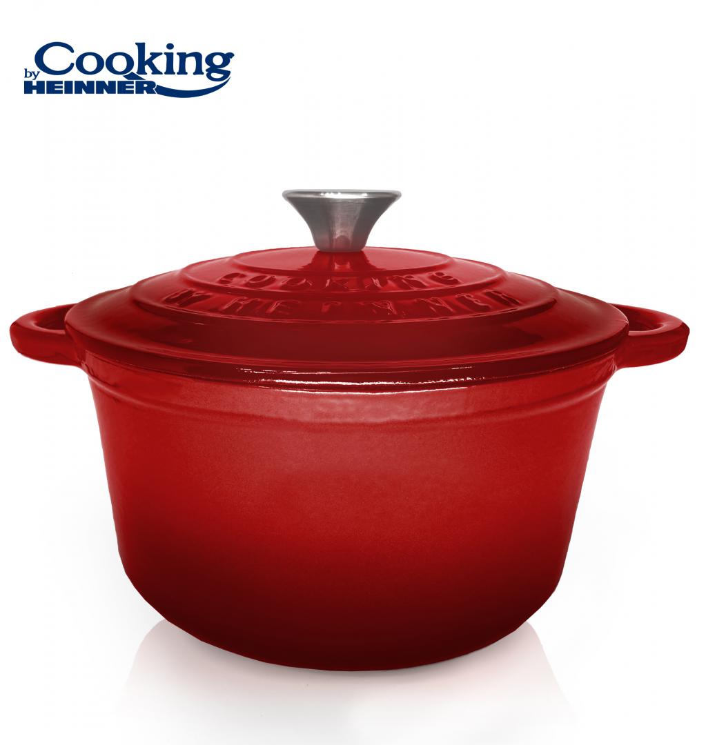 SEMIOALA FONTA EMAILATA+CAPAC 28X13 CM, 6L, RED LINE, COOKING BY HEINNER